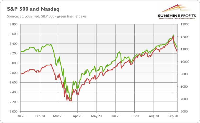 What did happen? Well, the ultra-bulls would say that it was just a normal correction on the long-term bullish trend. The perma-bears would disagree, claiming that the day of reckoning had finally arrived. But what is the truth? Well, corrections happen from time to time, that’s for sure. However, it might be also the case that investors have finally realized that the recovery is much slower than previously anticipated. As we repeated many times, there will be no V-shaped recovery and the economy will not return to the pre-coronavirus levels for a longer time than people thought it would.