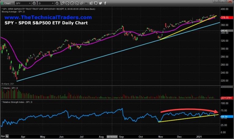 If another big market rotation were to take place in the near future, we believe early February would be the time/place for it to happen based on our predictive modeling system's expectations (see this research article: (https://www.thetechnicaltraders.com/what-to-expect-in-2021-part-ii-gold-silver-and-spy/). We also believe this downside price swing will end fairly quickly and that a continued bullish price trend will resume in March or April 2021.