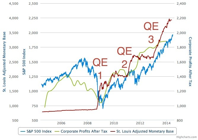 4) As we noted last week, profits are rolling just a bit. Meanwhile money supply and the stock market continue upward. But there is a thing called ‘QE tapering’ in play and that could eventually flatten out the money supply as happened in 2010 and 2011/12.