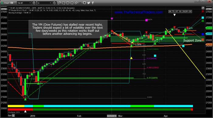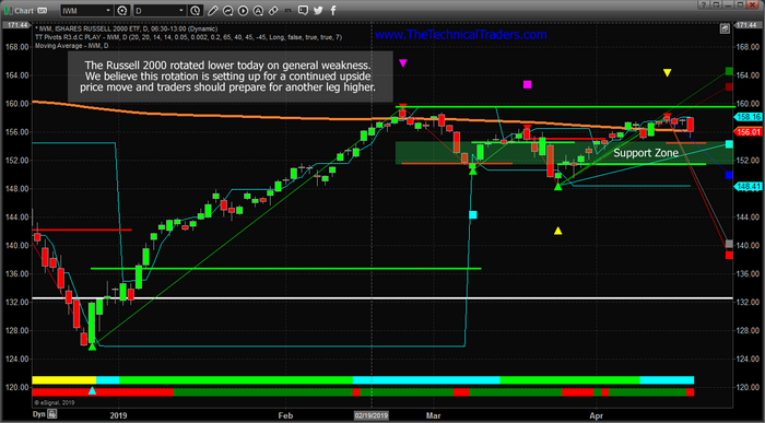 Again, the markets are a bit fractured today with price action. And that leads us to believe we could see a spike in the VIX and volatility over the next few days/weeks while this rotation plays out. Eventually, we believe a continued upside price leg will resume and we want to urge traders to play it safe for right now. Follow our “Support Zones” as a key indicator for when the price has fallen into a potentially risky level – below support. If this happens, then we would begin to become concerned that price may be initiating a bigger move to the downside.