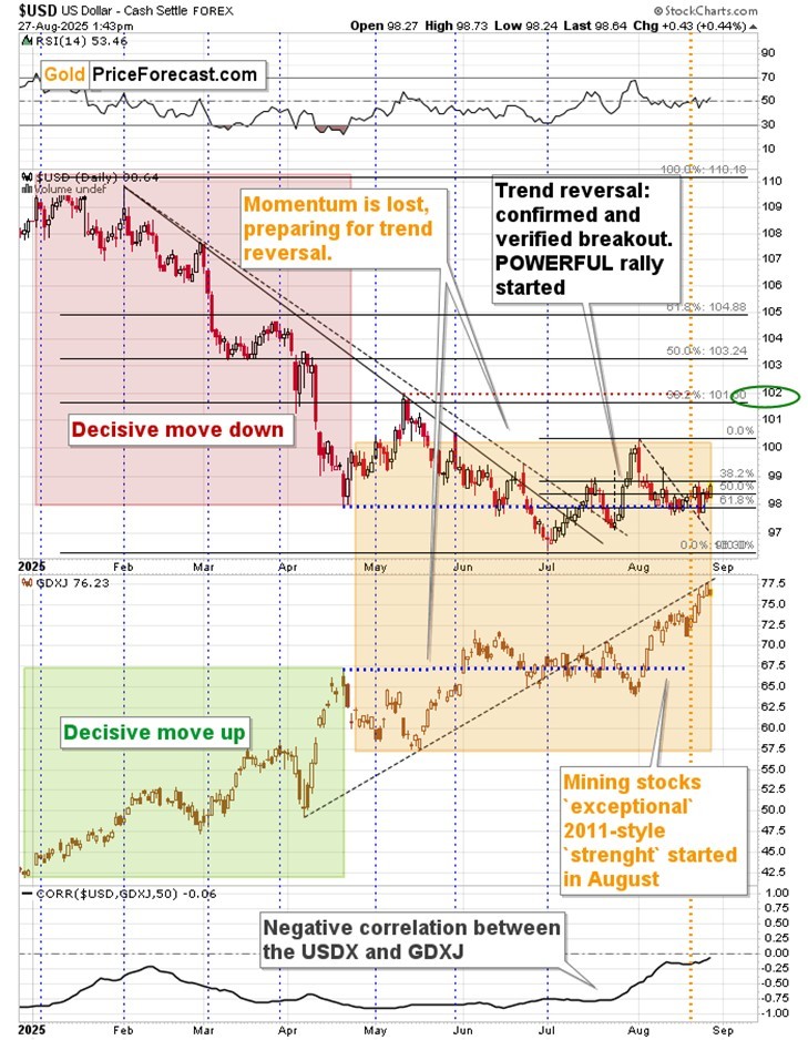 At the same time, the USD Index confirmed that the 98 level is a solid base, from which it’s ready to move higher – likely much higher.
