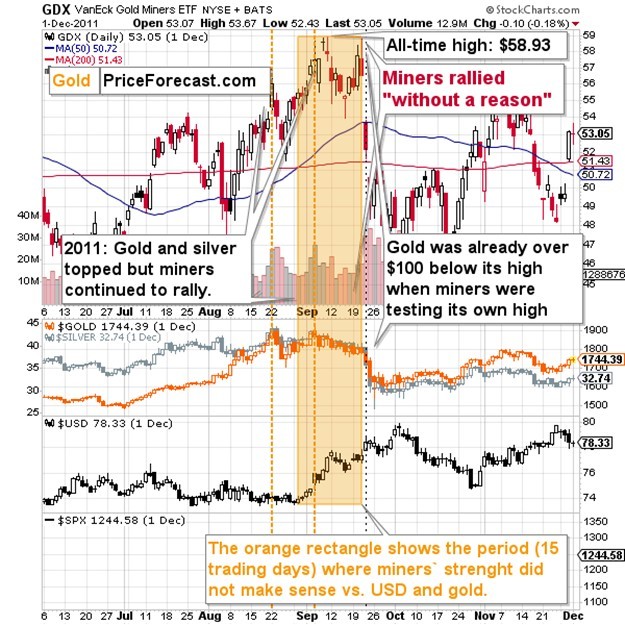 And indeed, we saw a very short-term rally. The move was quite emotional, but… if you look at it from the broader point of view, you’ll notice that it was only the mining stock charts where we saw technical changes – and that those changes were still in tune with what happened in 2011.