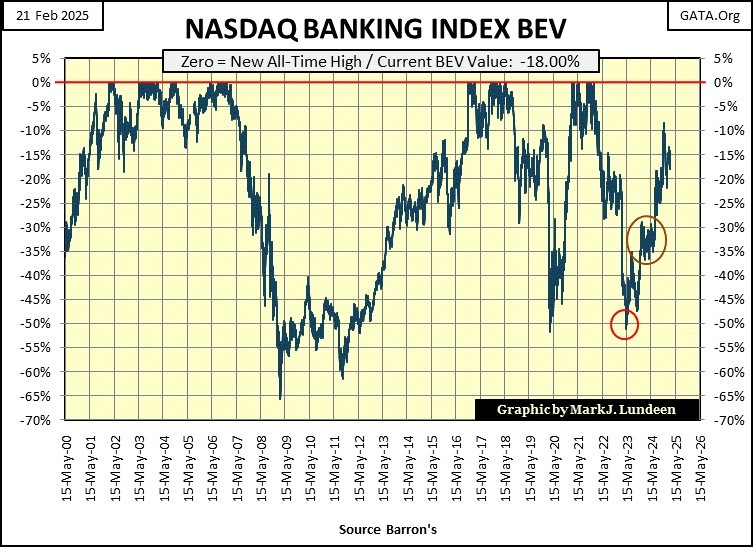 Looking at a BEV chart for the NASDAQ Banking Index (#20 table above, & #22 in the above performance tables), the banking system isn’t looking as well as we would like it to be.