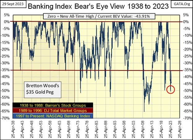As it is, it’s best not to allow the poor price action in gold upset and frustrate us. As there is nothing we can do about the poor price action in gold and silver, I’m keeping an iron hand on the tiller in this storm, as what is happening is very strange. The NASDAQ Banking Index down 44%, and every long-bond, Treasury or corporate, has seen their market valuation deflate by a big double-digit percentage since August 2020. In such a market, one would expect gold and silver to be advancing. That they haven’t is odd.
