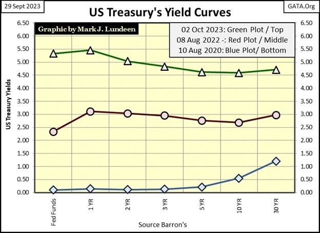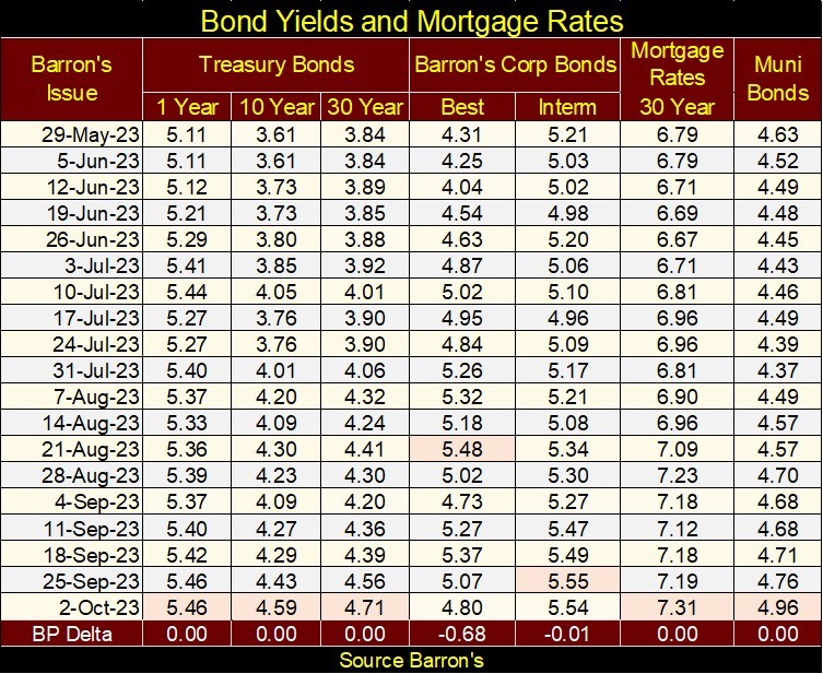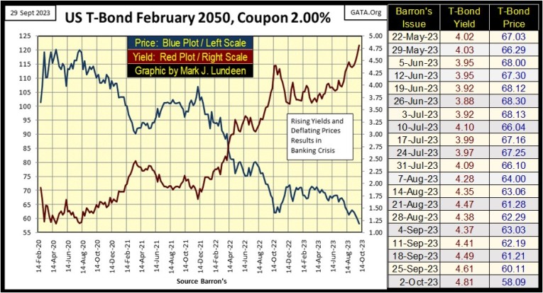 Go back up and look at the NASDAQ Banking Index in my BEV table for the major market indexes. The banks are #20 in the table, down over 40% from their last all-time high. Except for the XAU and long-term T-bonds, no other major stock index is down more. The reason for that sad fact can be seen in the bond chart above. It’s only a matter of time before we once again see news of another bank failing.