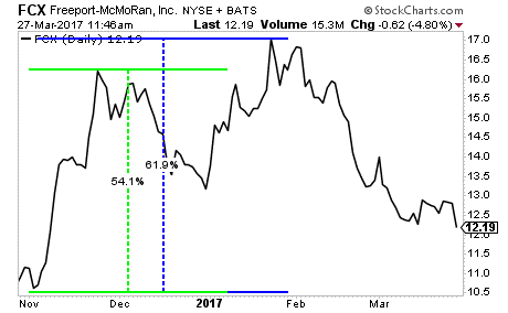 With that in mind consider that of the incredible 61% rally FCX staged post election night 2016, the vast majority of it 54% hit in November. Since that time, the chart went effectively nowhere with the exception of eking out a minor new high in January. And it has now unwound almost ALL of its election rally.