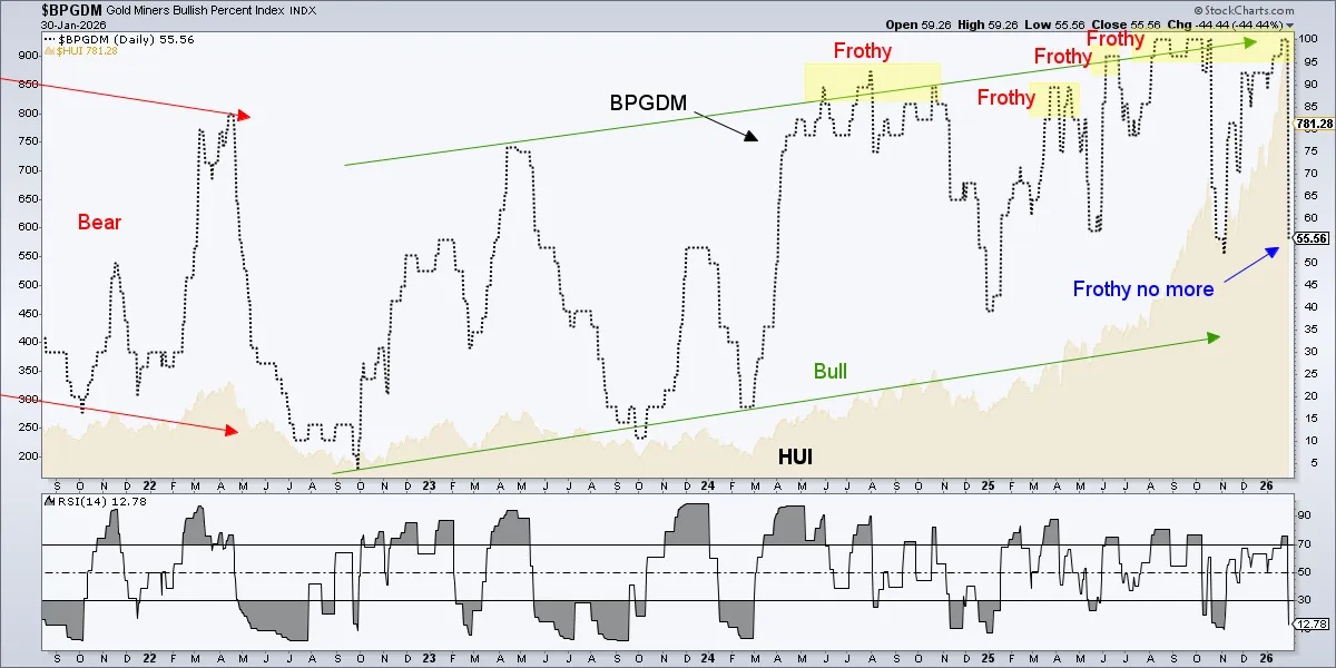 Make no mistake, if this were the old macro, with the Continuum chart above intact to its gentle disinflationary downtrend, we’d be preparing for years of precious metals bear market to come. That is what happened post 2011, when the promotional machinery kept on chugging blindly bullish into a terrible bear market. The post-2022 macro likely has other more bullish ideas, but first there will likely be more pain pending any coming interim recovery rallies/bounces.