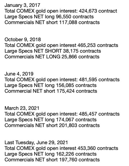 As you can see, the CoT survey of last Tuesday, June 29, revealed the smallest Large Speculator NET long position since the survey taken on June 4, 2019. Where was price in June of 2019? Near $1300, and this was just before The Fed formally reversed course and began cutting the fed funds rate at their June 2019 FOMC meeting.