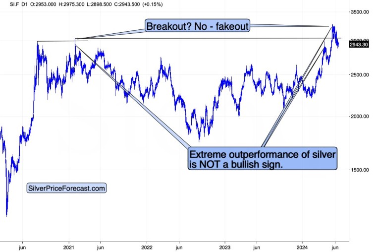 The breakout above those levels was clearly invalidated, which was a powerful sell signal. Its implications are about to unfold and take silver to much lower levels – likely well below $25.