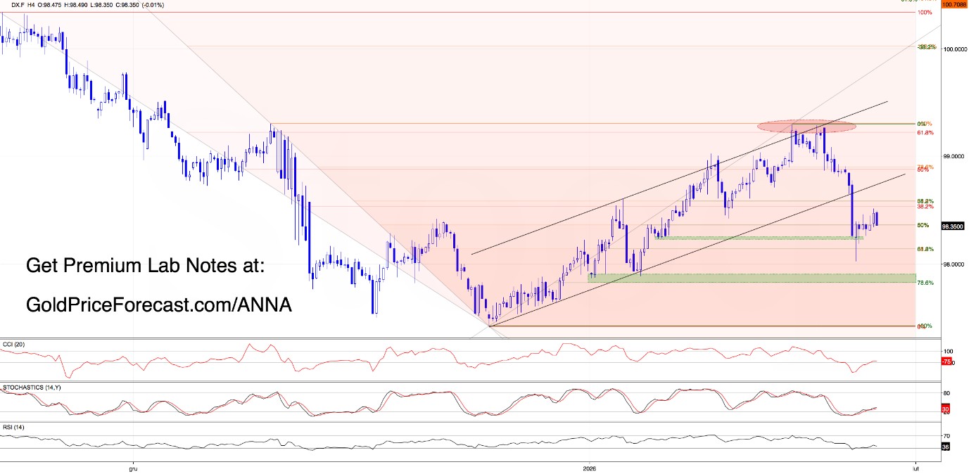 “(…) If sellers regain control and close the day under the upper line of the channel, their first downside target will likely be the previously broken area around 98.53. A clean break below that level could expose 98.26, and potentially even a move toward the lower border of the mentioned channel. (…)”