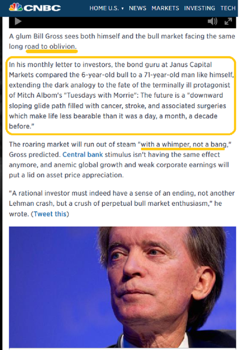 Bill suggests, as I have for more than a year, that rather than surging higher or blowing up in a fireball, the US equity market will simply fade away.