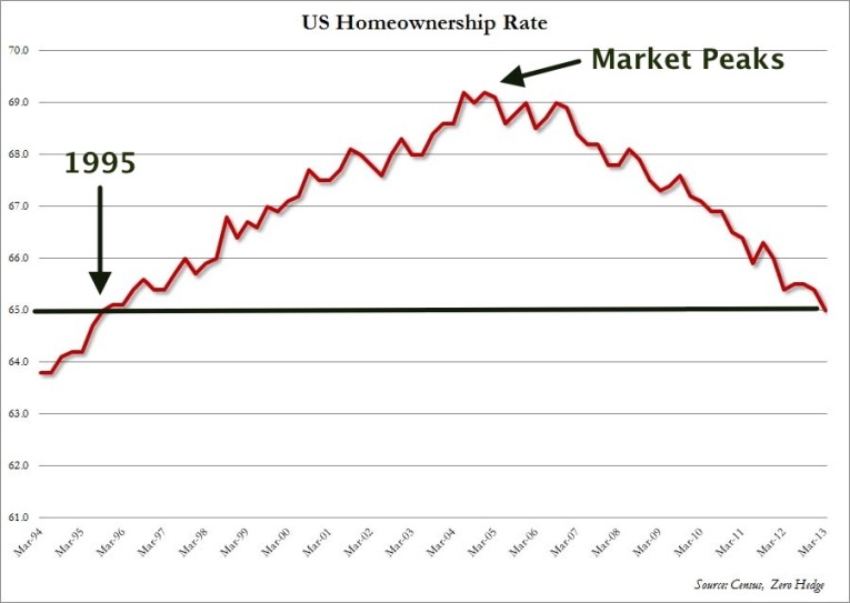 It is pretty obvious: the little guy was missing out on his second chance at the American nightmare of paying upwards of 2 and a half times what a house is really ‘worth’. So we have to relax those standards don’t we? Profits are being lost. Cash buyers, while great for those selling, are terrible for mortgage lenders. And those pesky interest rates have been going up too, slamming the door on a ton of these folks. That is the REAL story here and the one that isn’t being told. So, since rates are going up, we have to ameliorate some of these impediments to home ownership. We’ll go subprime again. Many places the banks are already going 0% down again. Back to the same old bag of tricks one more time. One more property grab. Detroit prices are up 16.4%? The city is bankrupt, the jobs are gone, and yet house prices are up 16.4%? We’re becoming a nation of renters again.