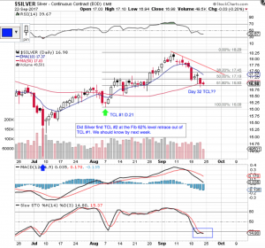 Cycle Status/Outlook: We won’t know for sur until next week but Gold may have found a TCL last Thursday on day 31. After a top on day 22. We should be nearing a TCL/DCL very soon from. Should Gold move lower next week, my faith in the longer Intermediate Cycle will be shaken. Same with the Miners and Silver. All are at critical support that need to hold over the next few days.