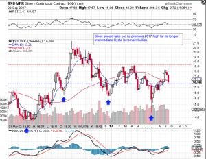 Remember that only gold price has made a new 2017 high in this Intermediate Cycle. Silver and the Miners still have much to prove in the weeks ahead as the next bounce will be into Trading Cycle 3 where most of Gold’s longer Intermediate Cycles top. We want to see all three make higher highs in TC3 before topping out.