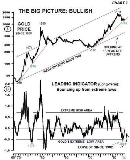 All factors considered, we believe 2014 will end up being a major bottom year, or part of a major bottom formation for gold. And Chart 1A provides a good example of this.