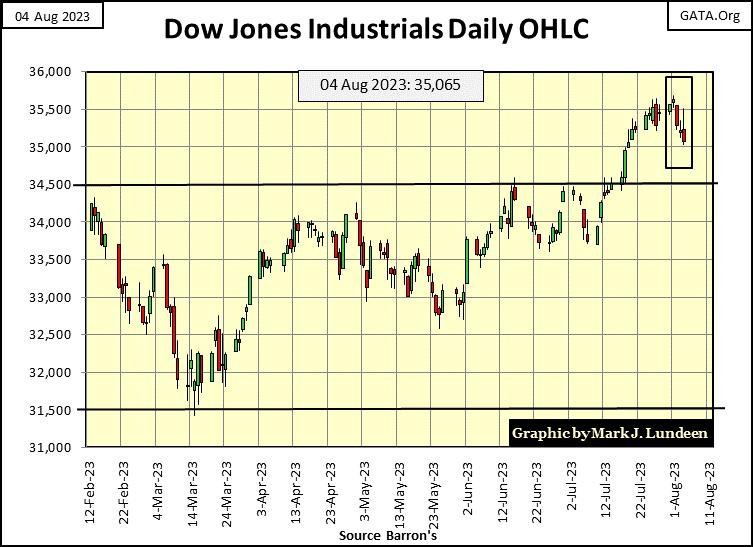 I expect that will all depend on what bond yields do in the weeks to come. If they continue rising as they have been so far in 2023, I’m thinking the 35,630 seen by the Dow Jones on August 1st will be a market top, to be followed by a market decline. As always, we’ll all know more next week.