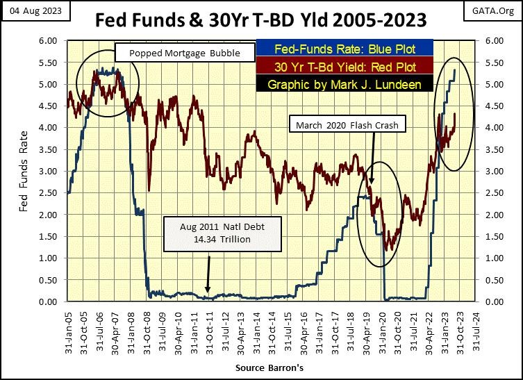 The FOMC began increasing their Fed Funds Rate (Blue Plot) beginning in April 2022. Both have increased significantly since they bottomed, and I doubt we’re anywhere near the top in the advance in bond yields. Though I know the idiots at the FOMC could cut their Fed Funds Rate back to zero, if they wished, but only at the risk of devaluing the dollar they’ve managed so poorly in the global market place.