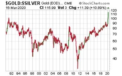 Strange, anomalous, and unprecedented price action in certain assets creates once-in-a-lifetime opportunities to profit as investors calm down and come to their senses. For example, you may never again get an opportunity to buy silver at less than 1/100th of the quoted gold price.