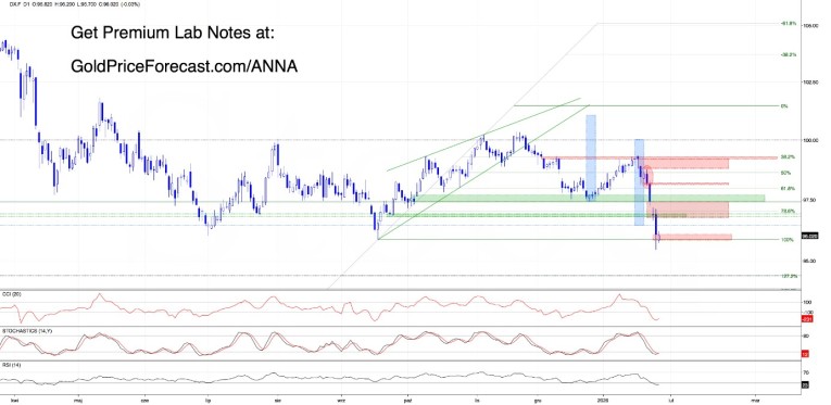 From today’s perspective, we see that bears once again had zero trouble delivering on our bearish scenario. The USD Index was pushed to its lowest level since February 2022, printing a fresh multi-year low at 95.44.
