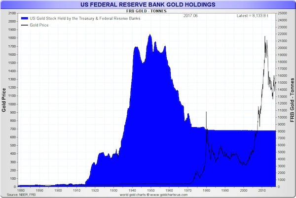 All proceeded in orderly fashion with little in the way of redemptions from the massive U.S. stockpile until the 1960s. Then a group of European nation-states, led by Germany and France, got the idea that U.S. inflationist economic policies had undermined the dollar, making gold a bargain at $35 per ounce. In other words, they came to the conclusion that the dollar was not as good as gold. Steadily, over a decade long period, they exchanged dollars for gold at the U.S. Treasury’s gold window. By the early 1970s, 14,000 tonnes of gold – or 64% of the stockpile – had departed the U.S. Treasury for European shores never to return.