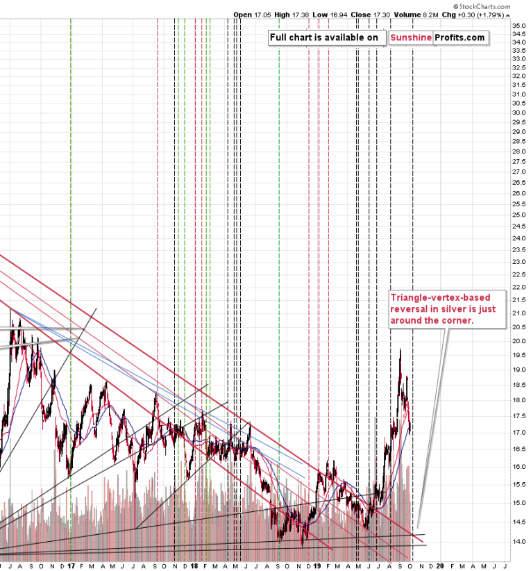 In the opening paragraph of today’s analysis, we wrote that there are signs that we’ll see a corrective upswing in the following weeks. Both signs come from applying the triangle-vertex—based reversal technique. Let’s take a look at them.