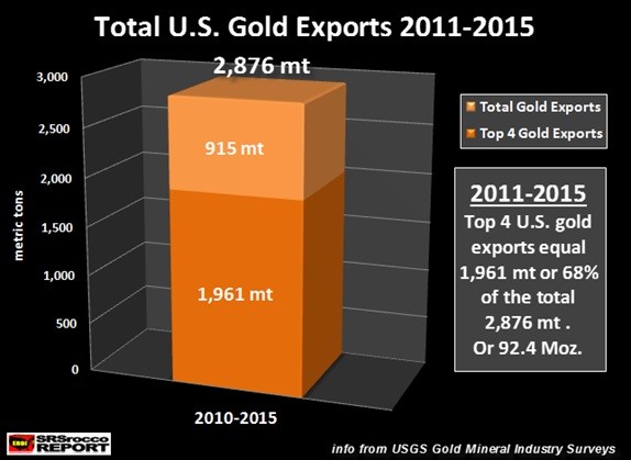 U.S. Gold Exports 2011-2015 = 2,876 mt