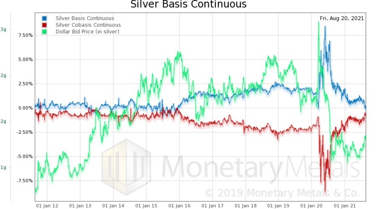This discussion of macroeconomics brings us to the unique data set offered by Monetary Metals, and our unique analysis. The gold and silver basis.