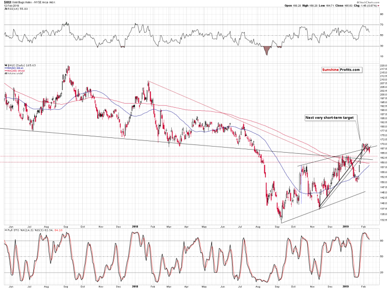 Gold miners’ decline was important as it was the lowest closing price of the month and at the same time, it was the first daily close that was visibly below all the rising short-term support lines. The breakdown presented on the above gold stock chart is now much clearer than it was before and the implications of the above chart more bearish.