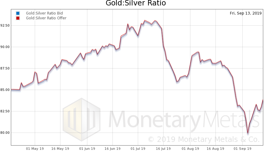 Was the attack on Saudi oil foreseen by market participants over a month ago? We doubt it (though we don’t know). But what seems clear is that the marginal market participant sees rising risks to be in the dollar, and is choosing to own metal. And at the current gold-silver ratio, the choice at the margin has been to hold silver.