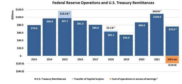 As this graphic from the Fed shows, the cost of operations also exceeded earnings in 2022 because remittances have fallen from 2021: