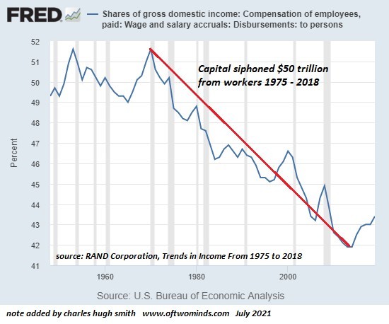 It's important to recall that roughly 3/4 of all local government expenses are for labor and labor overhead--healthcare, pensions, etc. Where do you think local taxes are heading as labor and labor-overhead costs rise? What happens to pension funds when all the speculative bubbles all pop?