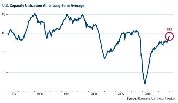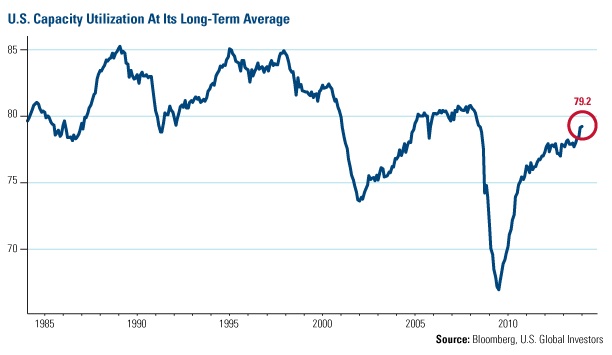 And if the utilization rate keeps climbing higher, companies won’t be able to increase their output without incurring additional fixed costs to purchase new machinery or build new facilities. That’s bullish for metals and mining companies, such as many of the businesses held in the S&P/TSX Venture Composite Index. Make sure your portfolio is poised to participate.