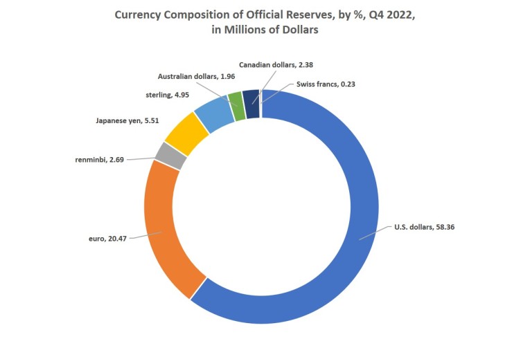 None of this threatens to immediately send the dollar into a tailspin or “collapse.” The dollar’s role in the world economy is still huge, and the dollar remains the most used currency by far. This becomes all the more obvious when we look at how much the US dollar still dominates foreign exchange reserves—which are assets in foreign currencies held on reserve by central banks. These reserves are partly an indication of just how much central banks anticipate dollars will be needed to engage in international trade.