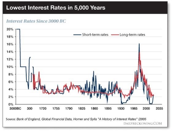 The middle class once looked forward to "clipping" bond coupons during their "golden" years but are now being greeted with what the Bank of England calls "the lowest interest rates in 5,000 years."