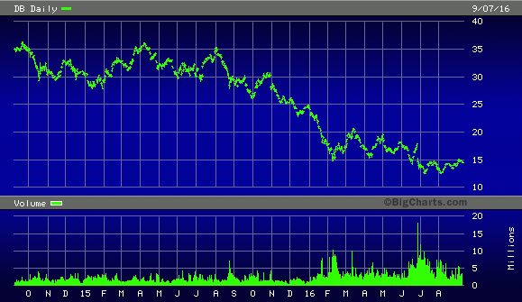 Commentators who favor this outlook tend to illustrate their dire predictions with a graph of Deutsche Bank’s stock performance since last year. It certainly adds a spark of credence to their argument based solely on the depth of the stock’s plunge.