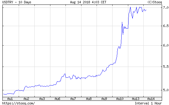 Chart 1: USD/TRY exchange rate from August 1 to August 14, 2018.