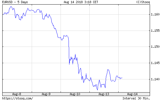 Chart 3: EUR/USD exchange rate from August 8 to August 14, 2018.