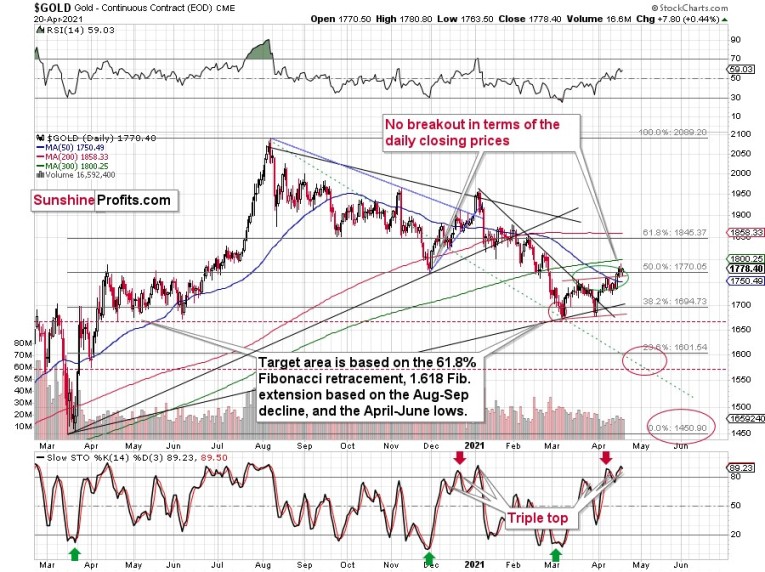 Despite a daily rally in gold, we haven’t seen a daily close above the lowest one of late November 2020. Consequently, the breakdown below this level was not invalidated and its bearish implications remain intact.