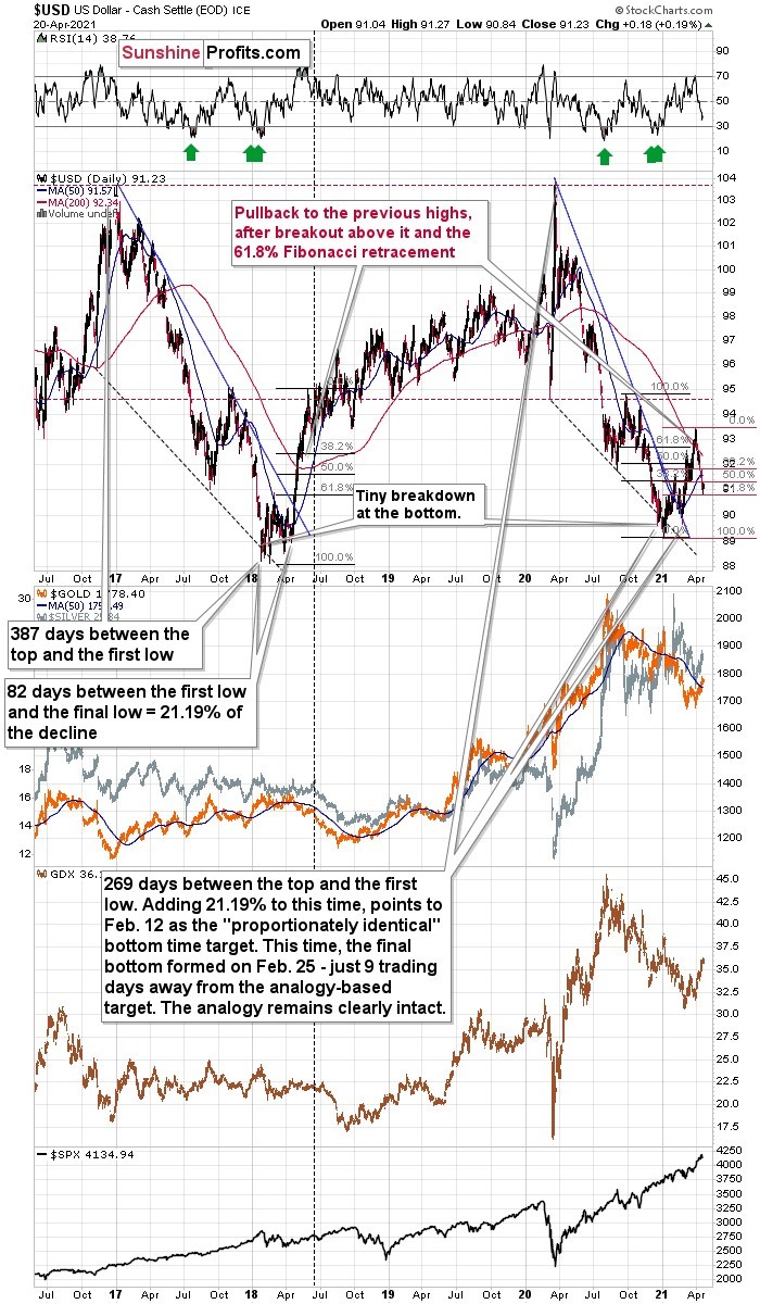 Speaking of the USD Index, please note that it seems to have bottomed almost right at its 61.8% Fibonacci retracement level based on the previous 2021 rally.