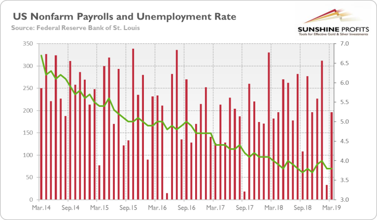 The March Employment Situation report indicates, thus, that the current economic expansion still has plenty of room to run despite growing worries about the slowdown or even an upcoming recession. It is not a good news for the gold bulls.