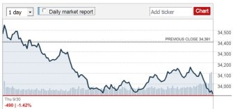 Consider the four CNN charts below of the DJIA. Two of the screenshots were taken in the brief widow of time when the trading volumes are still displayed shortly before the market closes for the day. Observe in the upper images the change in the volume pattern during the day – high turnover just after the open. The bear trend in the first chart was reversed with sustained buying that cut the loss for the day almost by half – but required a sustained boost of high volume later to keep the market from collapsing.
