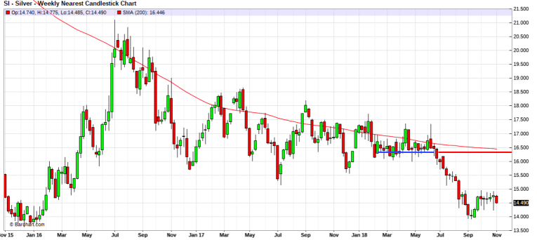 COMEX Digital Silver has its own set of challenges, but it shares many of the same possibilities into year end. The key for silver is to begin besting many of the same 50¢ intervals that offered support during the fall that began in June and ended in September. Key support for the first half of this year was consistently found near $16.40, and it is this level that will offer the most stout resistance on any move back upward. This same area is where silver will find its own 200-week moving average, a technical level you may recall as being strongly enforced as resistance since mid-2016.