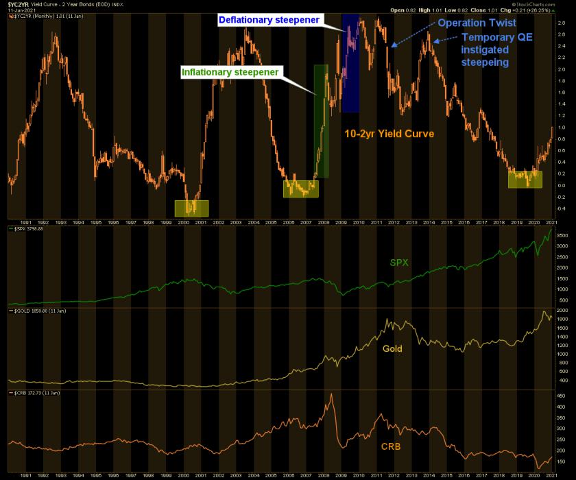 Yield Curve steepens under inflationary pressure while Gold’s monthly chart patiently builds its Handle.