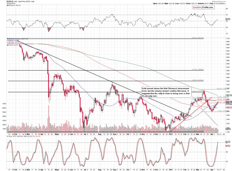 Gold’s move higher is also small given the fact that the situation in Ukraine remains very tense – gold is not reacting with the strength one might have expected to see.