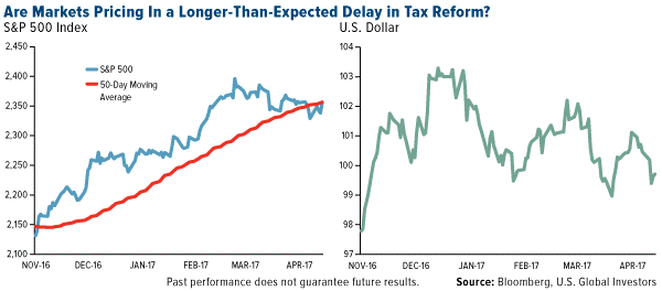 I believe this response is way overdone. BCA geopolitical strategist Marko Papic said as much during his visit to our office last month. Marko insisted that tax reform is still on its way, despite Congress’ earlier failure to repeal Obamacare. Just last week, House Speaker Paul Ryan said lawmakers were putting the “finishing touches” on a new health care bill—one that reportedly might scrap protections for people with preexisting conditions—while Treasury Secretary Steven Mnuchin reassured Americans they can soon expect to see proposals for “the most significant change to the tax code since Reagan.”