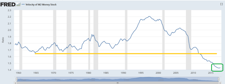 Money velocity is starting to rise. The upturn is subtle, but it’s there! As Powell takes over the Fed and ramps up QT, I expect money velocity to surge aggressively from the 60-year lows that it sits at now. As this happens, gold stocks should essentially “run rickshaw” over bullion.