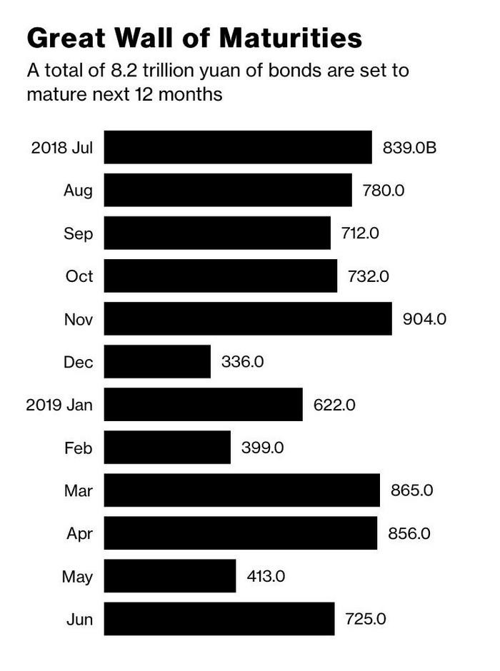 China is in the midst of a massive debt cycle that is about to play out over the next 18+ months (totaling about 1.8 Trillion Yuan).