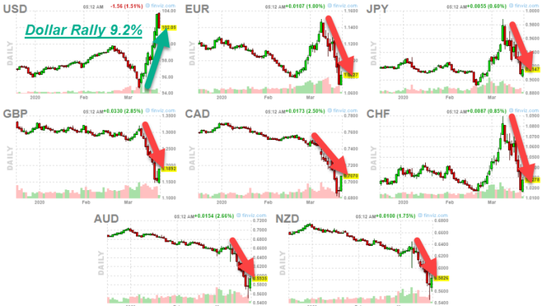 Out of all the major indexes, commodities, and currencies, only one asset and trade moved higher. It's no surprise given the title that cash or the US Dollar is the asset of choice having rallied over 9% while everything else fell with bonds down 22.75%, stocks 30%-40%, gold miners 58%, and crude down 62%.