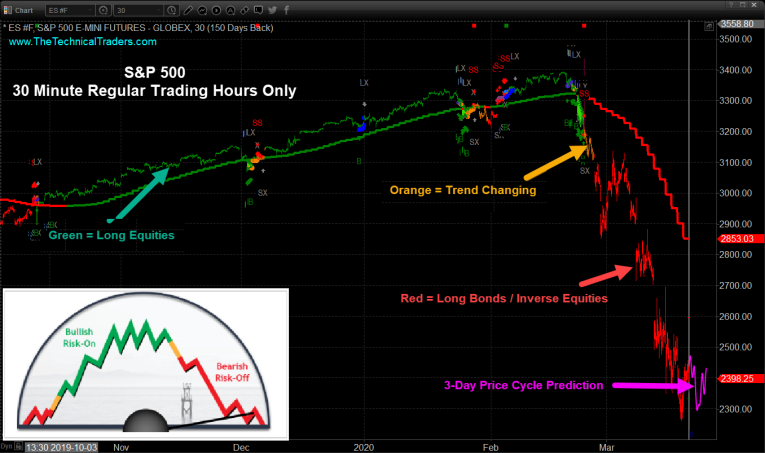 Recently, we created a market gauge showing you visually where the market is within its 30-50 day price cycle.