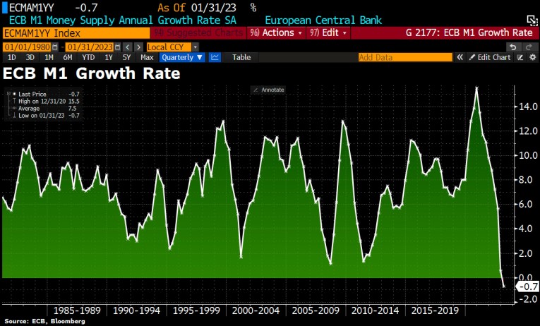 M1 money supply in the Eurozone as of February 27th, 2023. Source: Holger Zschäpitz